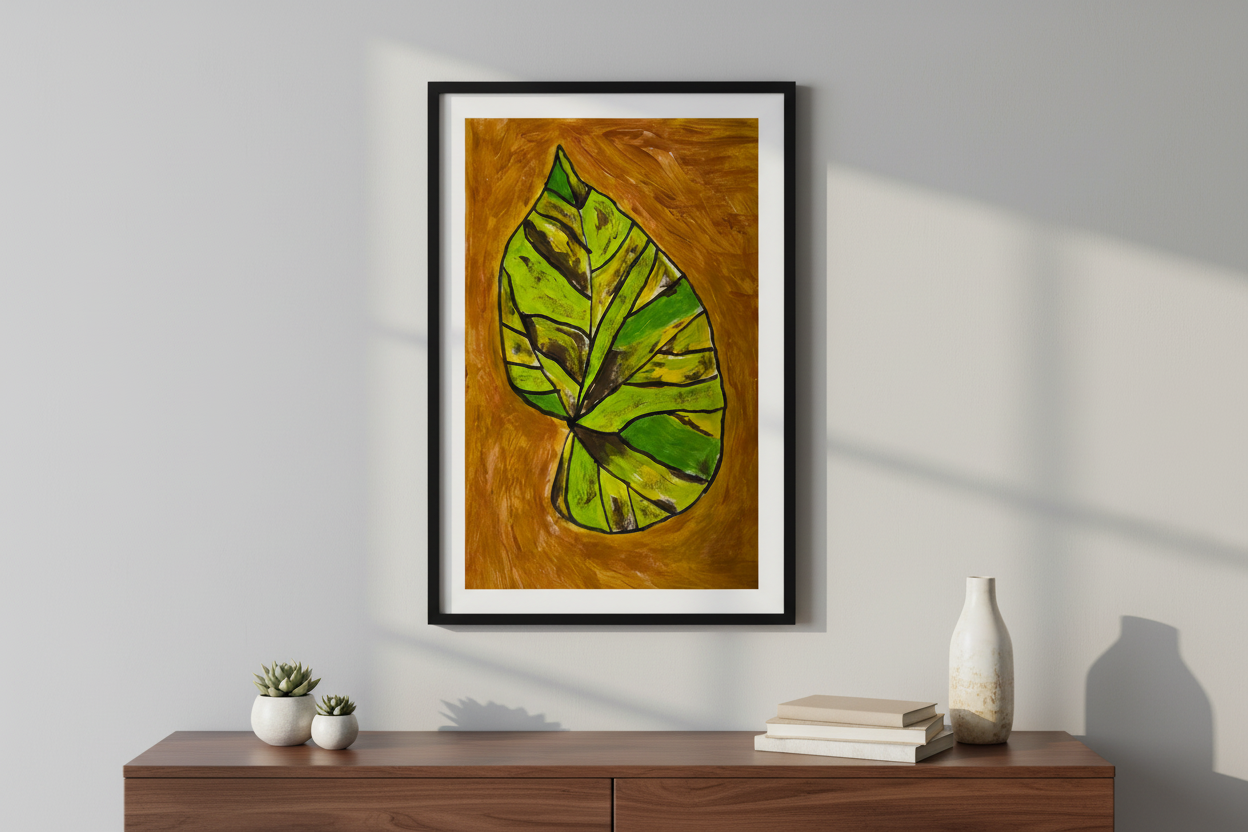 Bring a touch of botanical abstraction into your space. This piece captures the rhythmic patterns and lush colors of a Begonia in a unique, stylized form.